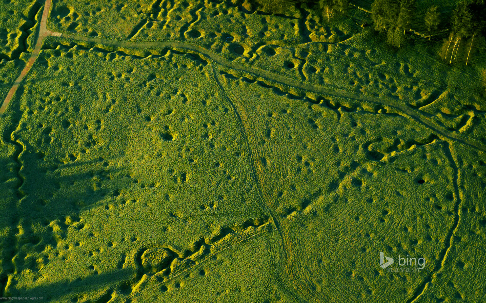 صد سال پیش در شروع جنگ جهانی اول خارج از شهر بومونت هامل در شمال فرانسه در این میدان جنگ ..چاله ها? ایجاد شده از انفجار خمپاره ها و نارنجک ها و مسیر های کنده شده برای سنگر گیری ها همه و همه در اینجا برای بزدید مردم دست نخورده باقی مانده و حفظ شده..تا باشد یاد جنگی از زمان شروع تا پایان خود چیزی جز مرگ و آوارگی برای مردم نداشته و نخواهد داشت.