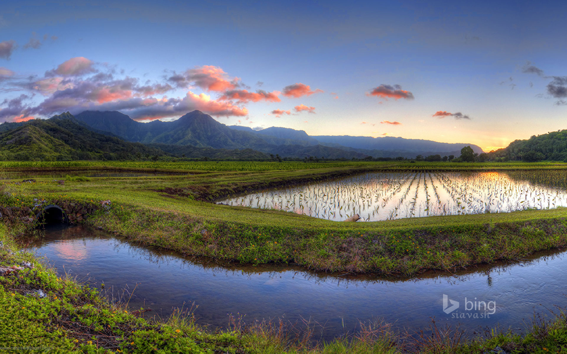 منظره ی زیبا اززمین های زیر کشت رفته برنج در نزدیکی ساحل کائوآئی در هاوای..بومیان این سرزمین برنج را غذای مقدس مینامند.